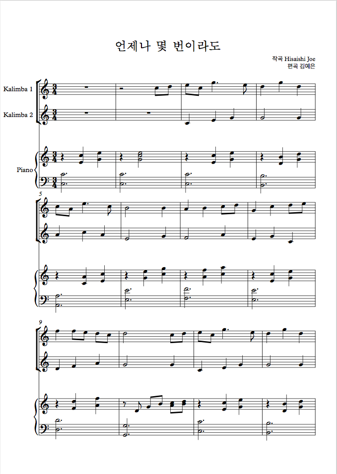 언제나 몇 번이라도 (센과 치히로의 행방불명 ost) 히사이시 조 칼림바 2중주 악보