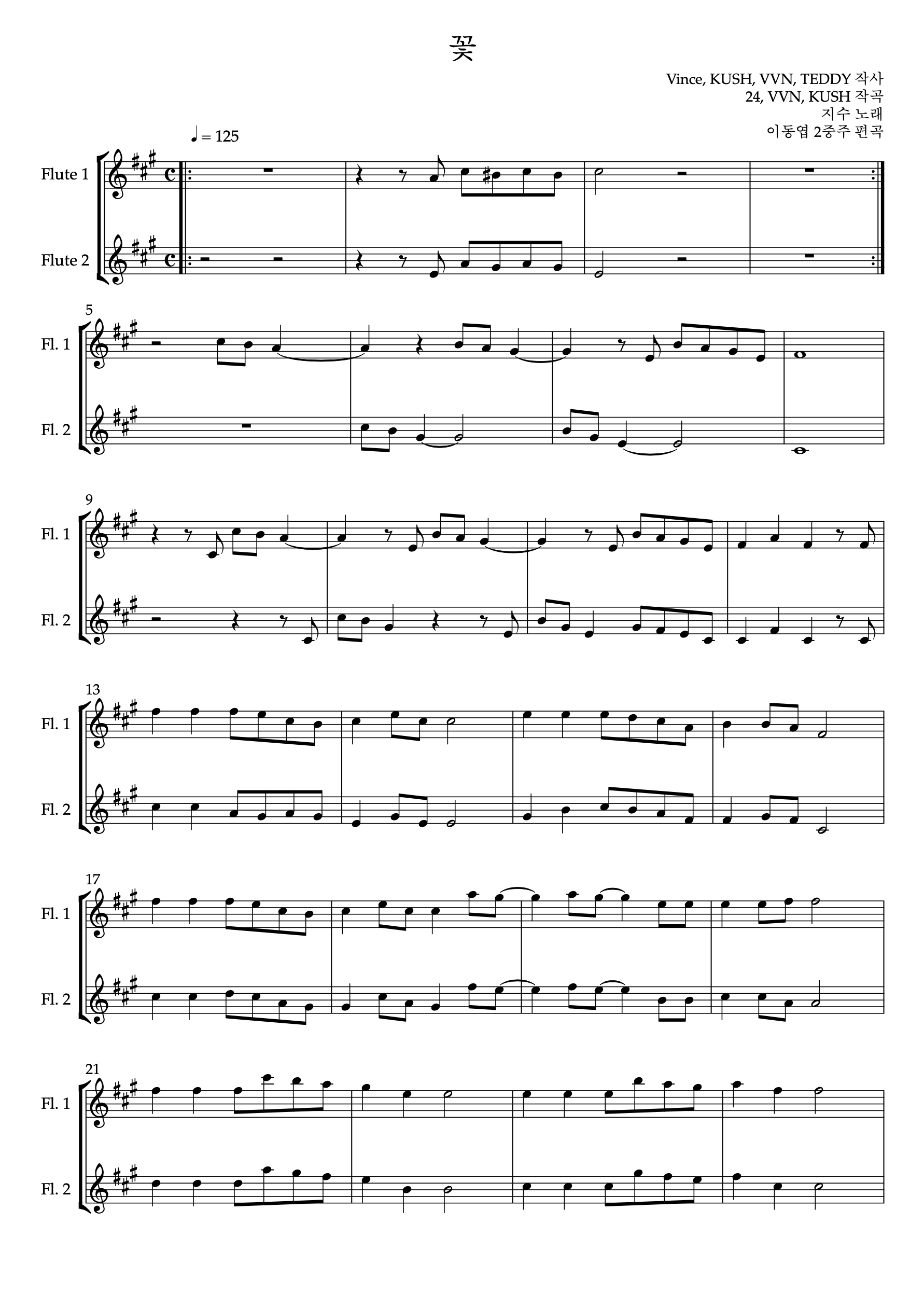 꽃 (Flower) 지수 플룻 2중주 악보