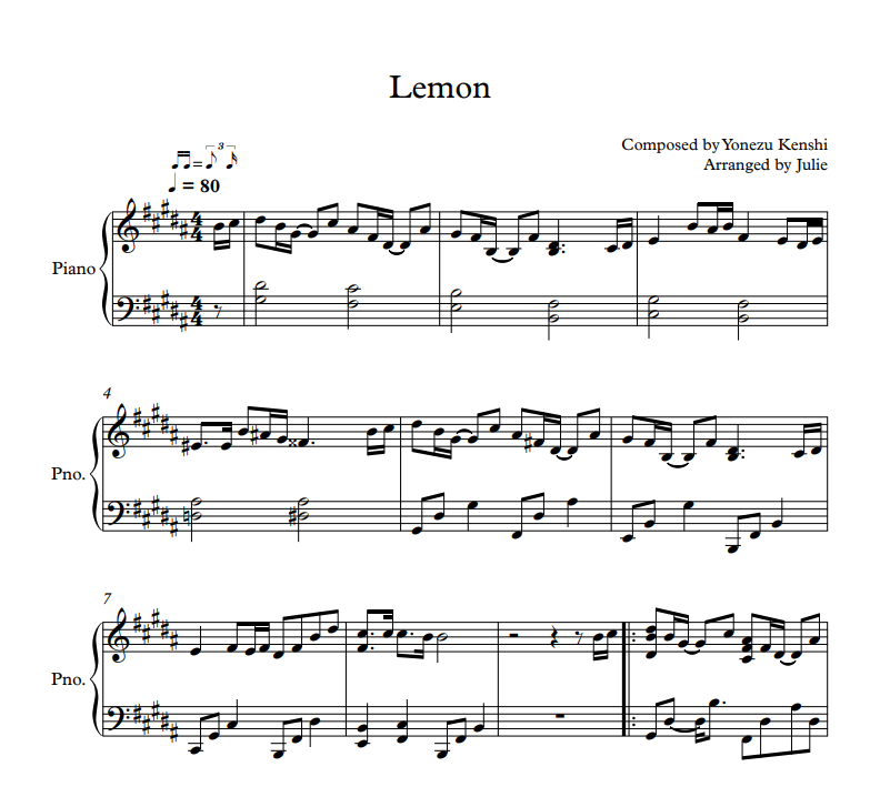 요네스켄시(Yonezu Kenshi) - Lemon 피아노 악보