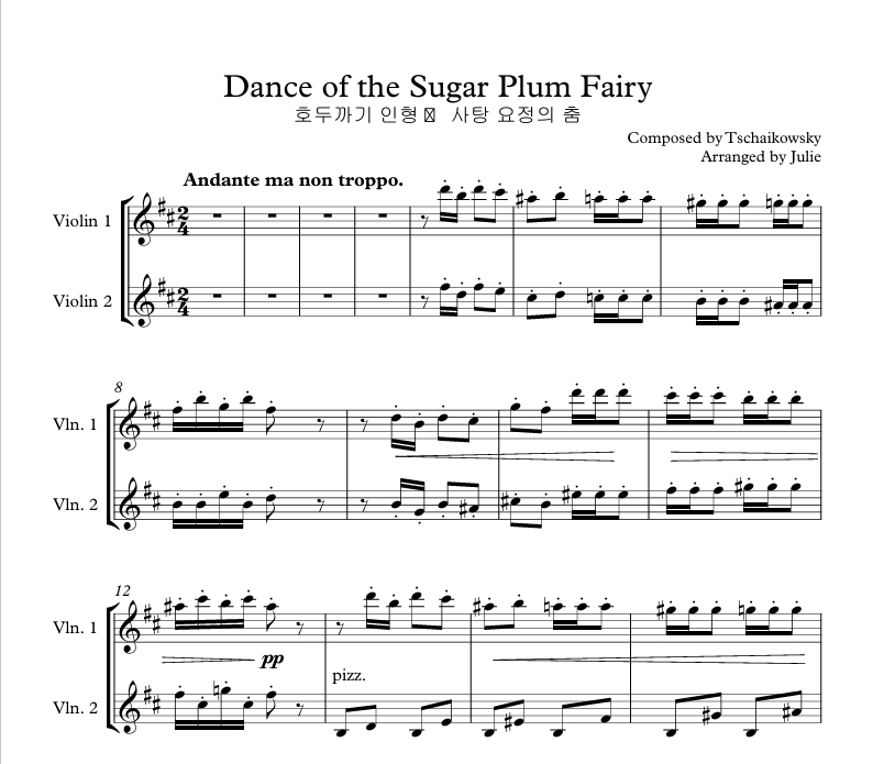 차이코프스키 - 사탕 요정의 춤 (호두까기 인형 中) 바이올린 2중주 악보