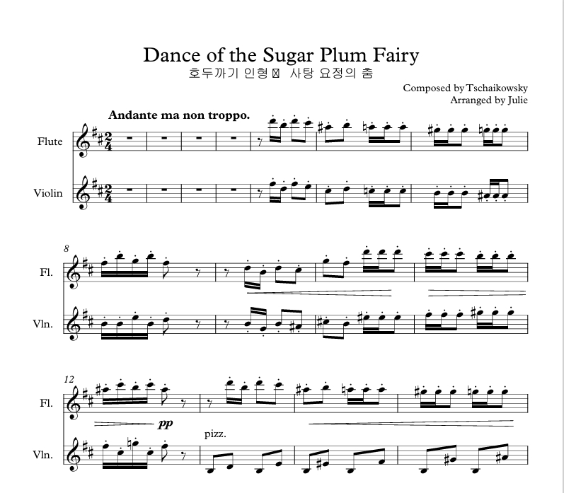 차이코프스키 - 사탕 요정의 춤 (호두까기 인형 中) 플룻 바이올린 2중주 악보
