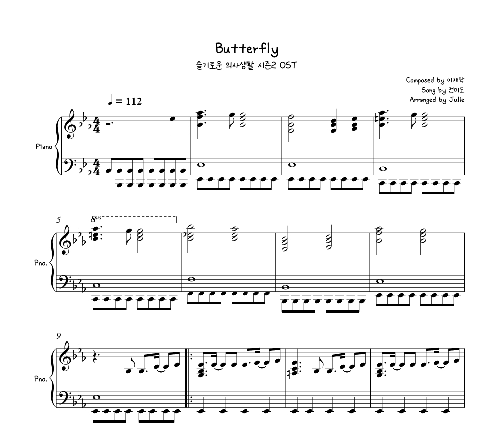 Butterfly - 전미도(슬기로운 의사생활 시즌2 OST) 피아노 악보