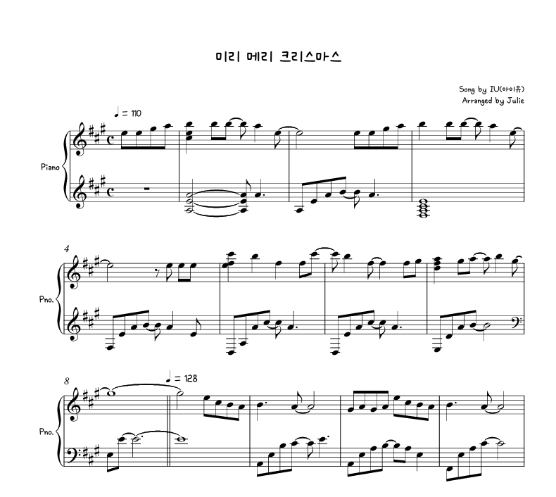 미리 메리 크리스마스 - 아이유(IU) 피아노 악보