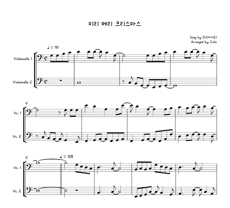 미리 메리 크리스마스 - 아이유(IU) 첼로 2중주 악보