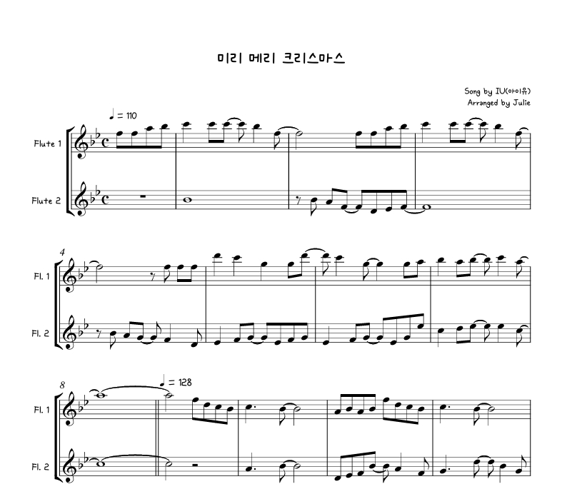 미리 메리 크리스마스 - 아이유(IU) 플룻 2중주 악보