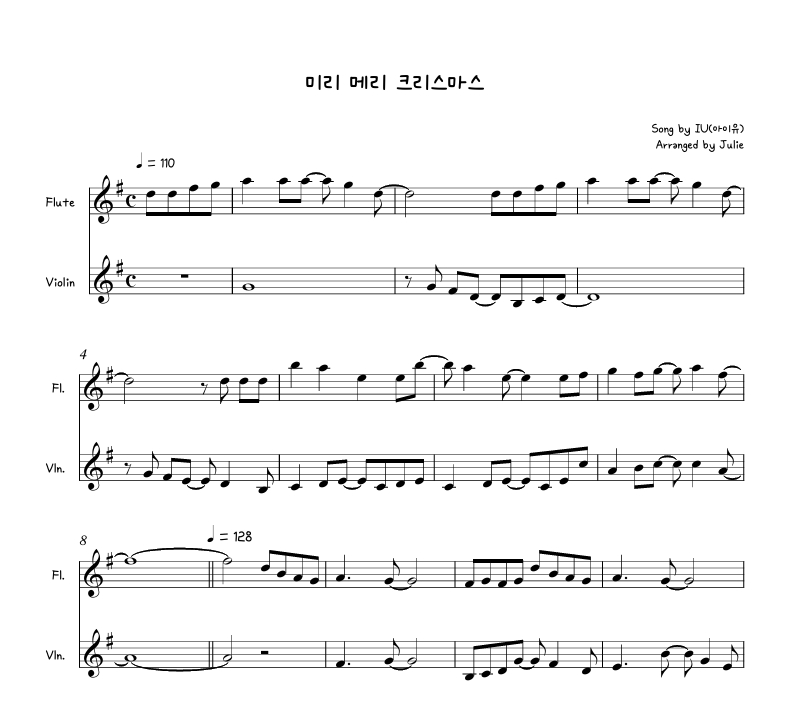 미리 메리 크리스마스 - 아이유(IU) 플룻 바이올린 2중주 악보
